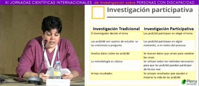 En relación a ello, Maribel Cáceres, Vicepresidenta de Plena Inclusión España, intervino en el Simposio “el poder de las personas: hacia la conquista de espacios en el conocimiento científico” que estuvo centrado en las metodologías participativas e inclusivas para la investigación en discapacidad.