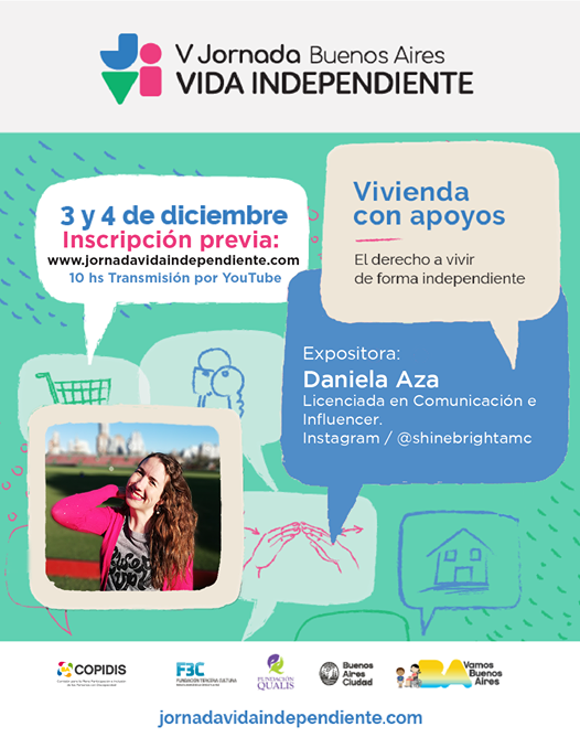 Daniela Aza es Licenciada en Comunicación, egresada de la UBA, speaker y creadora de @Shinebrightamc, una plataforma de comunicación en Instagram para inspirar y motivar a través de sus vivencias con discapacidad. Conocida en las redes sociales como influencer de la inclusión, en su cuenta escribe sobre diversos temas ligados a la adversidad y discapacidad desde su historia: mitos y tabúes, moda, belleza, diversidad y mujeres con discapacidad, resiliencia y superación. Podés inscribirte para participar de la jornada en el siguiente link: