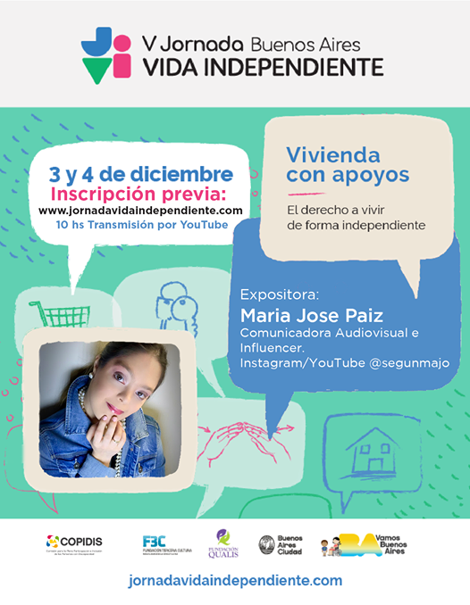 María José Paíz Arias, Majo Paiz, es de Panamá y tiene 22 años y estudia Comunicación Audiovisual con énfasis en producción de radio y televisión en la Universidad Interamericana de Panamá. En el 2014, Majo protagonizó la primera obra de teatro inclusiva, La Cucarachita Mandinga, obra de la cual se produjo un documental “es Hora de Enamorarse” ganando premios a mejor documental en Festivales en Panamá. Majo se ha convertido en vocera del Síndrome de Down, lo que la ha llevado a dictar conferencias en países como Egipto, Ecuador, España, Costa Rica. En el año 2017 inicia su propio blog en su canal de Youtube, titulado Según Majo y ha ganado premios y reconocimientos como influenciadora social dentro y fuera de Panamá. Podés inscribirte para participar de la jornada en el siguiente link: